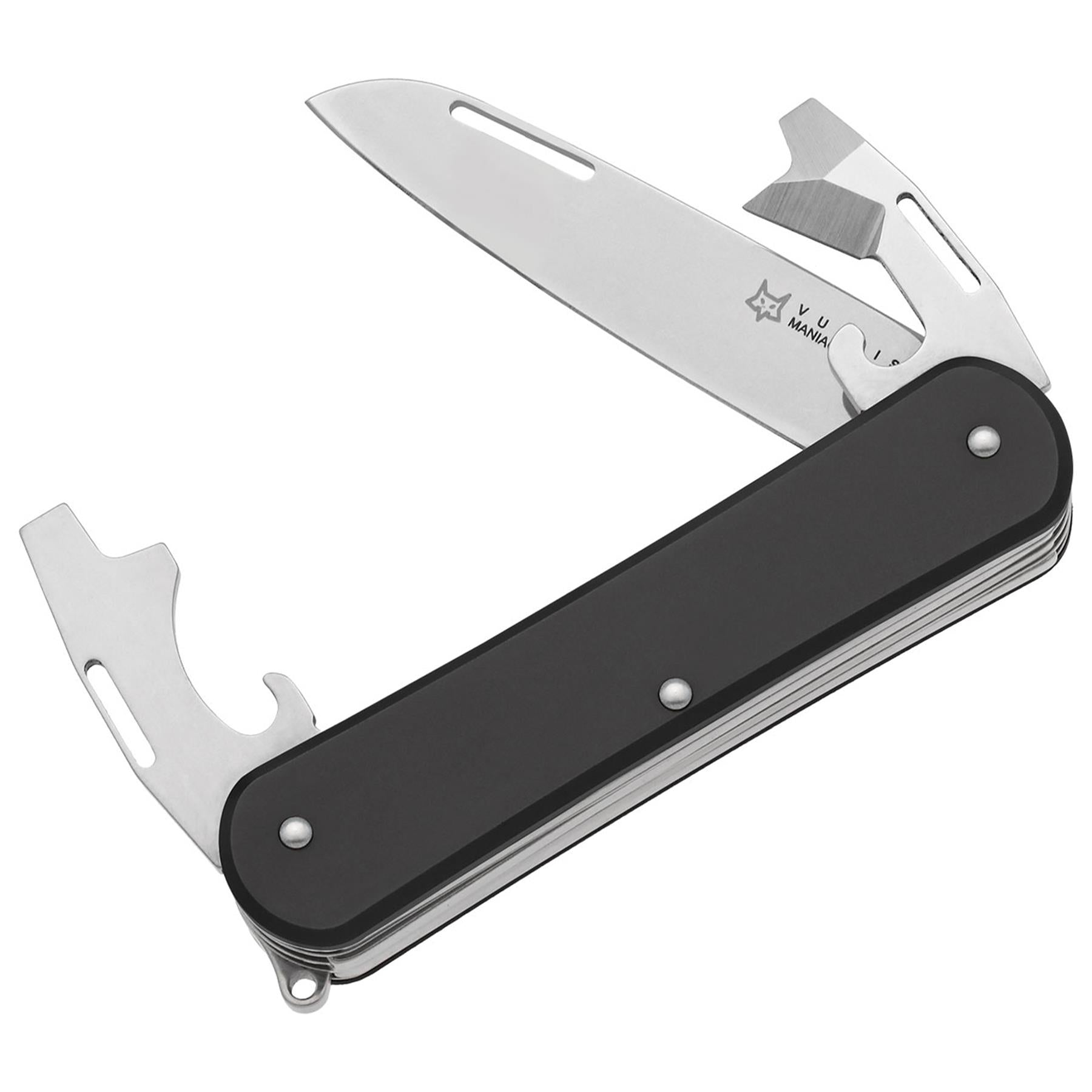 FoxKnives VULPIS FX-VP130-3 BK is a durable multi-purpose knife with a high-quality N690Co steel blade and a minimalist black anodized aluminum body. The knife has a bottle opener and a flat screwdriver, making it perfect for outdoor activities and everyday tasks.