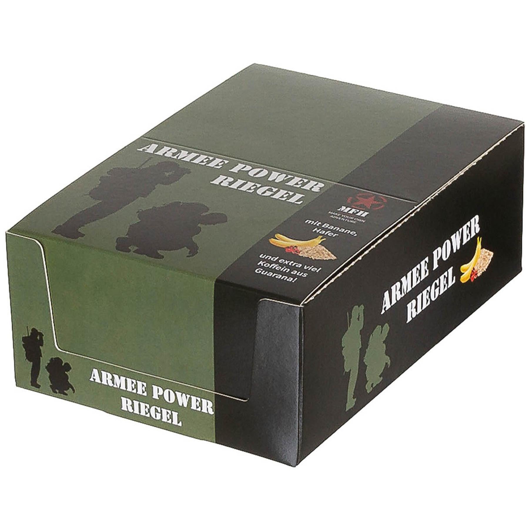 MFH armijos energijos batonėlis – tai avižų pagrindu pagamintas batonėlis su banano ir guaranos skoniu, skirtas aktyviai veiklai lauke ir fiziškai intensyvioms situacijoms. Batonėlyje yra kofeino iš guaranos ekstrakto, kuris padeda greitai atgauti energiją.