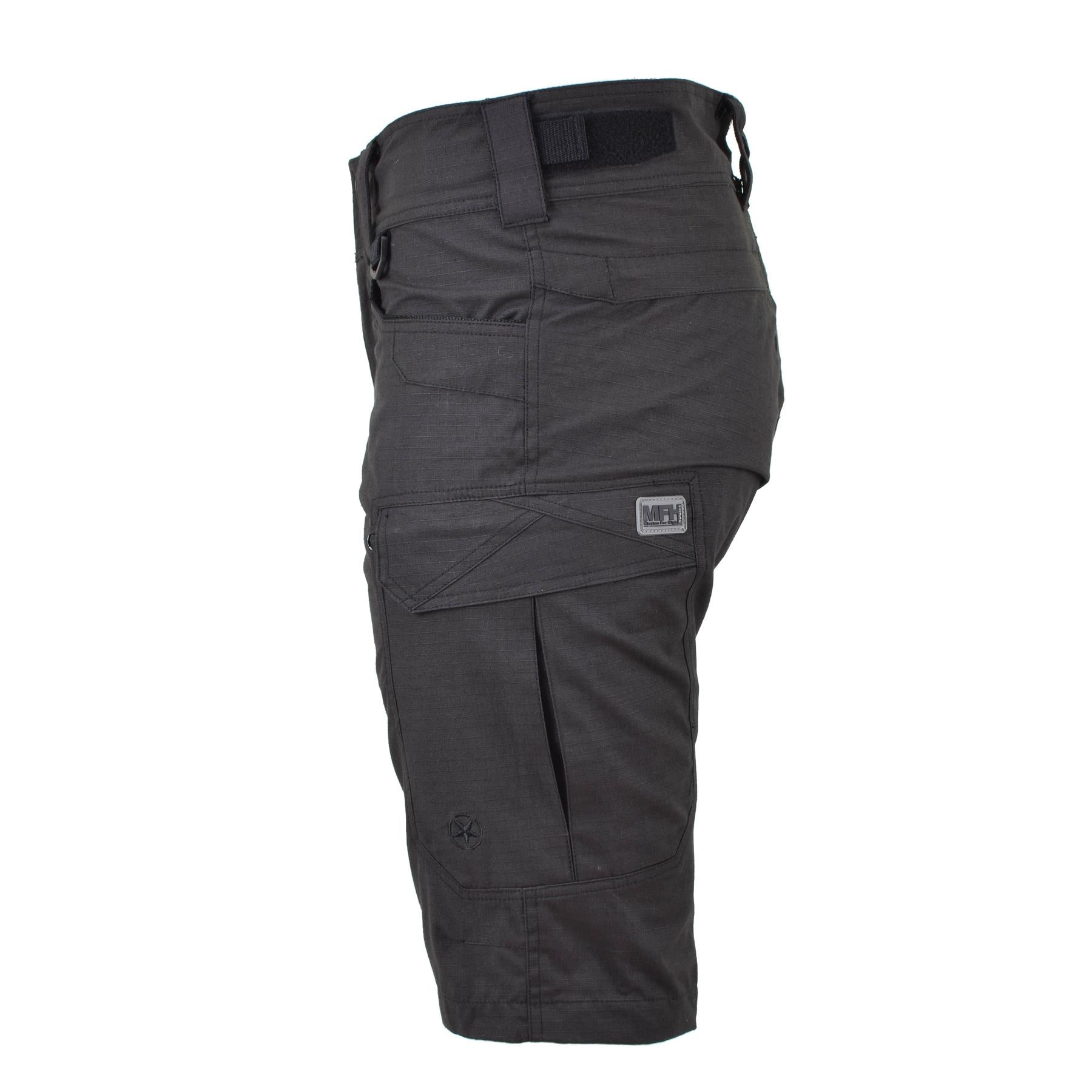 Introducing MFH Brand Military Style Black Bermuda Shorts: The MFH Brand Military Style Bermuda Shorts in Black are a combination of style and functionality that ensures comfort, durability and versatility. These military-inspired shorts are your choice for both leisure and outdoor adventure. Comfortable and durable ripstop cotton: These bermuda shorts are made from ripstop cotton fabric, offering the perfect balance of comfort and durability. Thanks to their ripstop construction, they can withstand tough conditions while keeping you comfortable. Convenient Plastic D-Ring: These shorts have a plastic D-ring on the left side, providing a versatile attachment point for tools or accessories, ensuring you have everything you need close at hand. Hidden Zippered Back Pocket: A hidden zippered back pocket keeps valuables or small essentials safe and accessible while on the go. Adjustable Hook and Loop Waist: The adjustable hook and loop waist allows you to adjust to your body, making these shorts perfect for your fit and comfort. Zipped Pockets: Zipped pockets provide additional storage for quick access to your belongings without sacrificing security: These shorts are lightweight and feature a high waist, making them lightweight, functional, and stylish. The high waist ensures a secure fit and the lightweight design prevents discomfort during extended wear. MFH Brand Military-Style Bermuda Black Shorts are more than just shorts; it's a statement of practicality, durability and style. Whether you're hiking, camping, or just looking for comfortable and durable shorts for your everyday adventures, these bermuda shorts are a reliable choice. Their ripstop construction, versatile features, wide belt loops and classic military-inspired design embody the spirit of preparedness and outdoor style. It's not just clothing, it's a commitment to comfort and functionality for every activity you do.