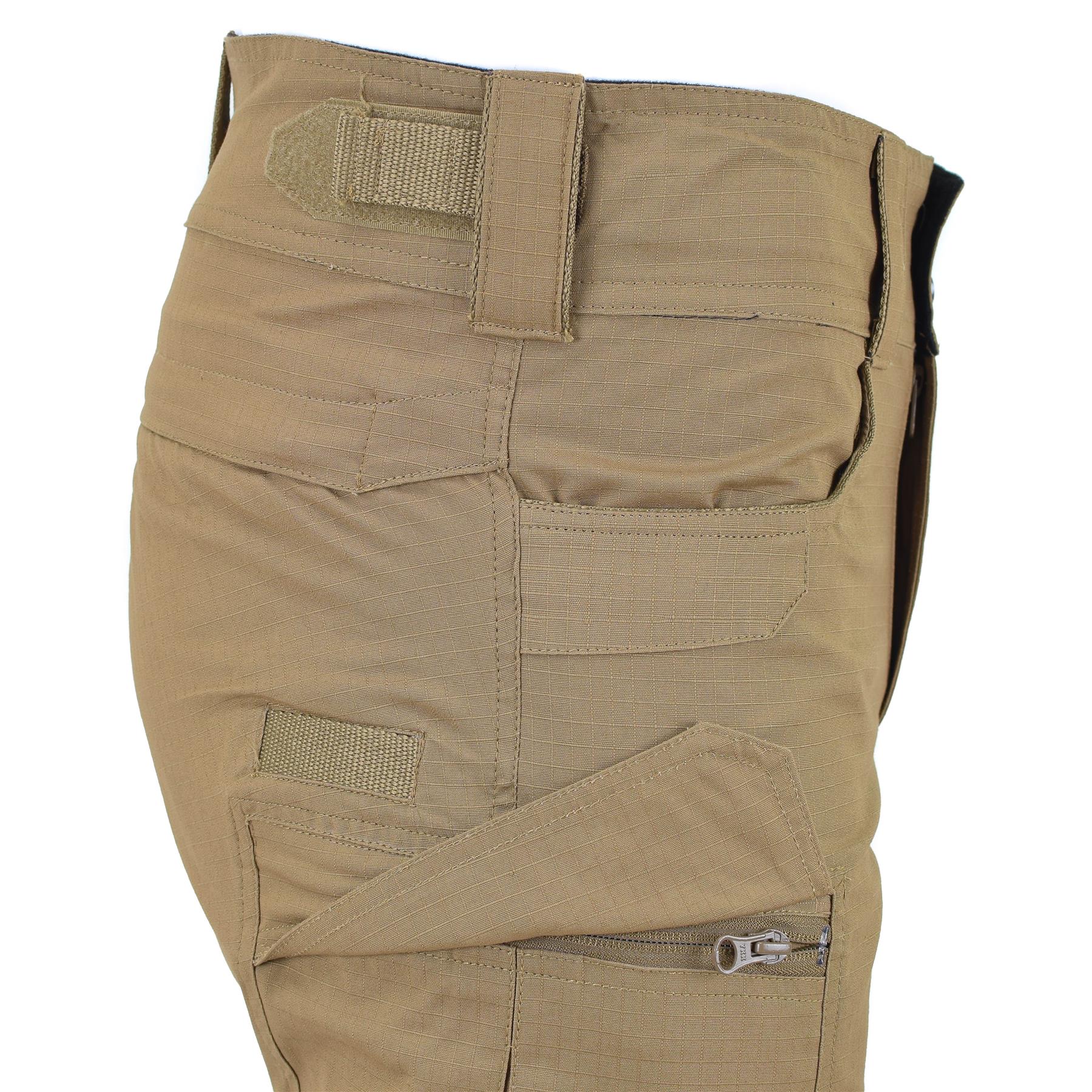 MFH Bermuda cargo style shorts made of comfortable, durable and light Rip-Stop material (100% cotton fabric). Two front open pockets, two side closed pockets and two rear hidden zippered pockets to store your essentials. Adjustable waist and wide belt loops. The left side has a D-ring to attach additional equipment. Cargo style shorts are suitable for various activities, high quality shorts. Features: Color: Khaki Made of Rip-Stop material (100% cotton fabric) Two front open pockets Two side closed pockets Two back hidden zippered pockets Adjustable waist Wide belt loops D-ring attached
