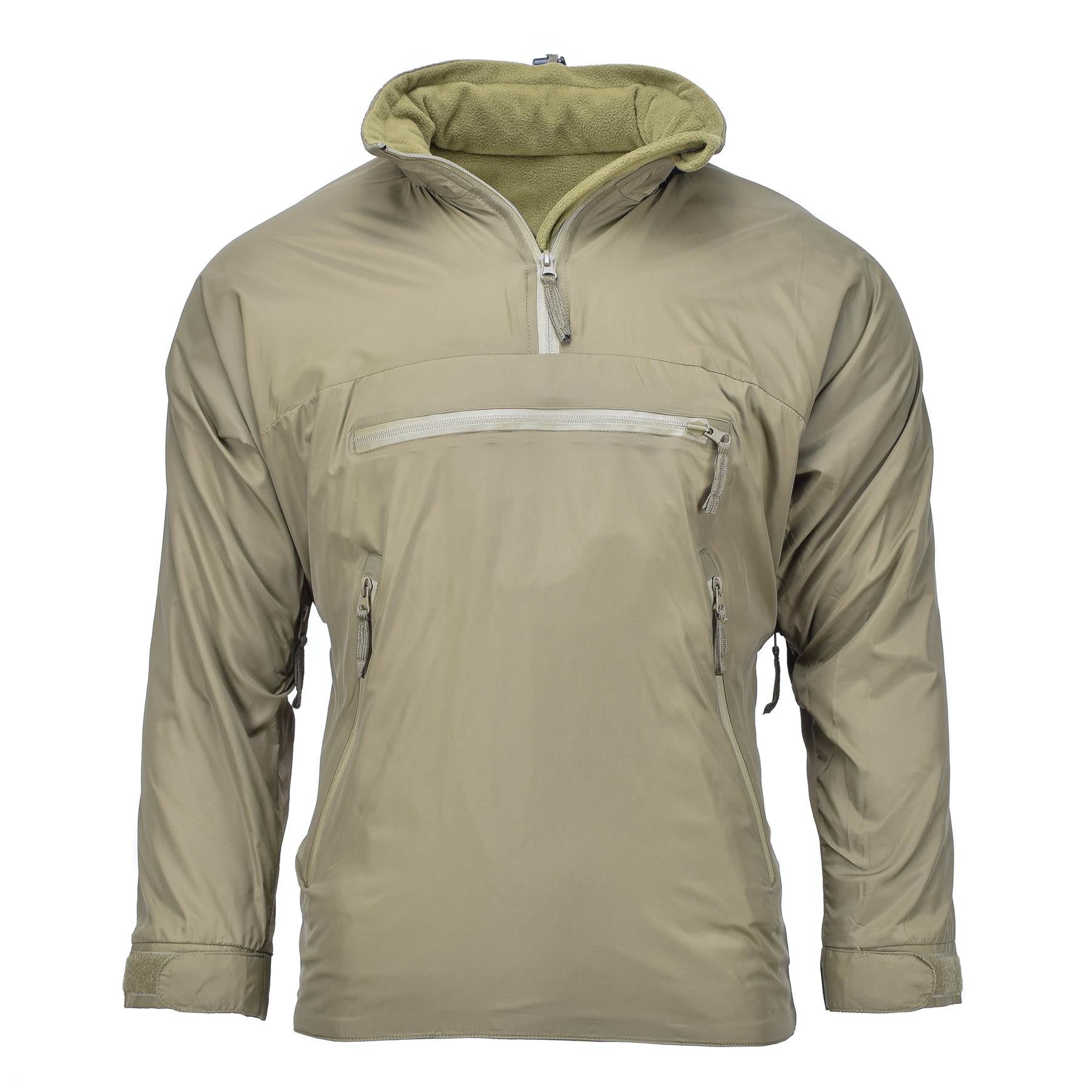 The MFH Anorak style jacket is wind and water resistant and made from a durable nylon blend fabric. The jacket has two side zippered pockets. And one large zippered front pocket. Soft, soft fleece lining provides warmth inside the jacket. Collapsible hood in the collar. Features One large roomy front zip pocket. Two side zip pockets Wind and water resistance Felt lining Adjustable hood Ventilation zips in the armpits