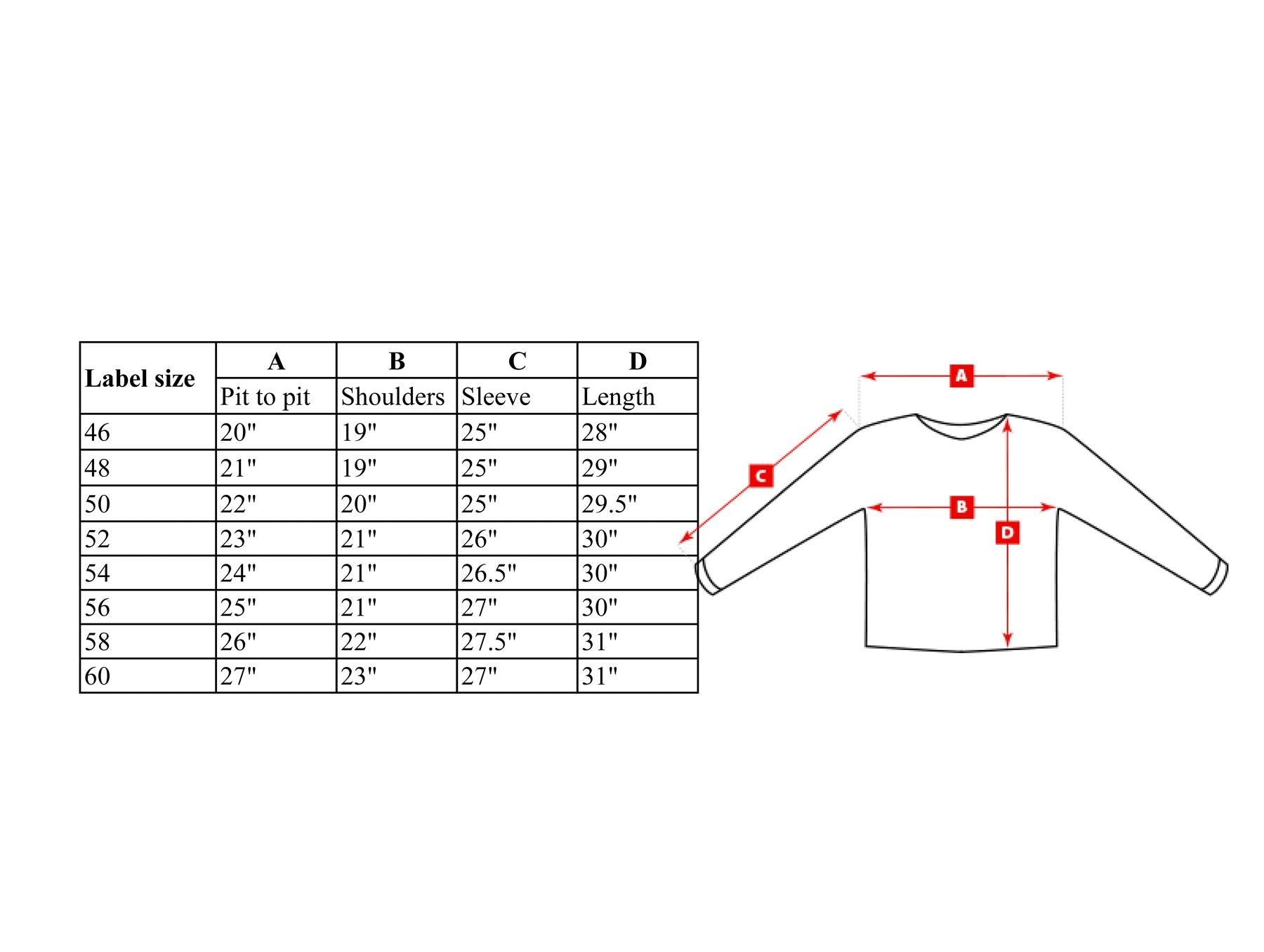 | 56 | 64 cm | 53 cm | 69 cm | 76 cm |