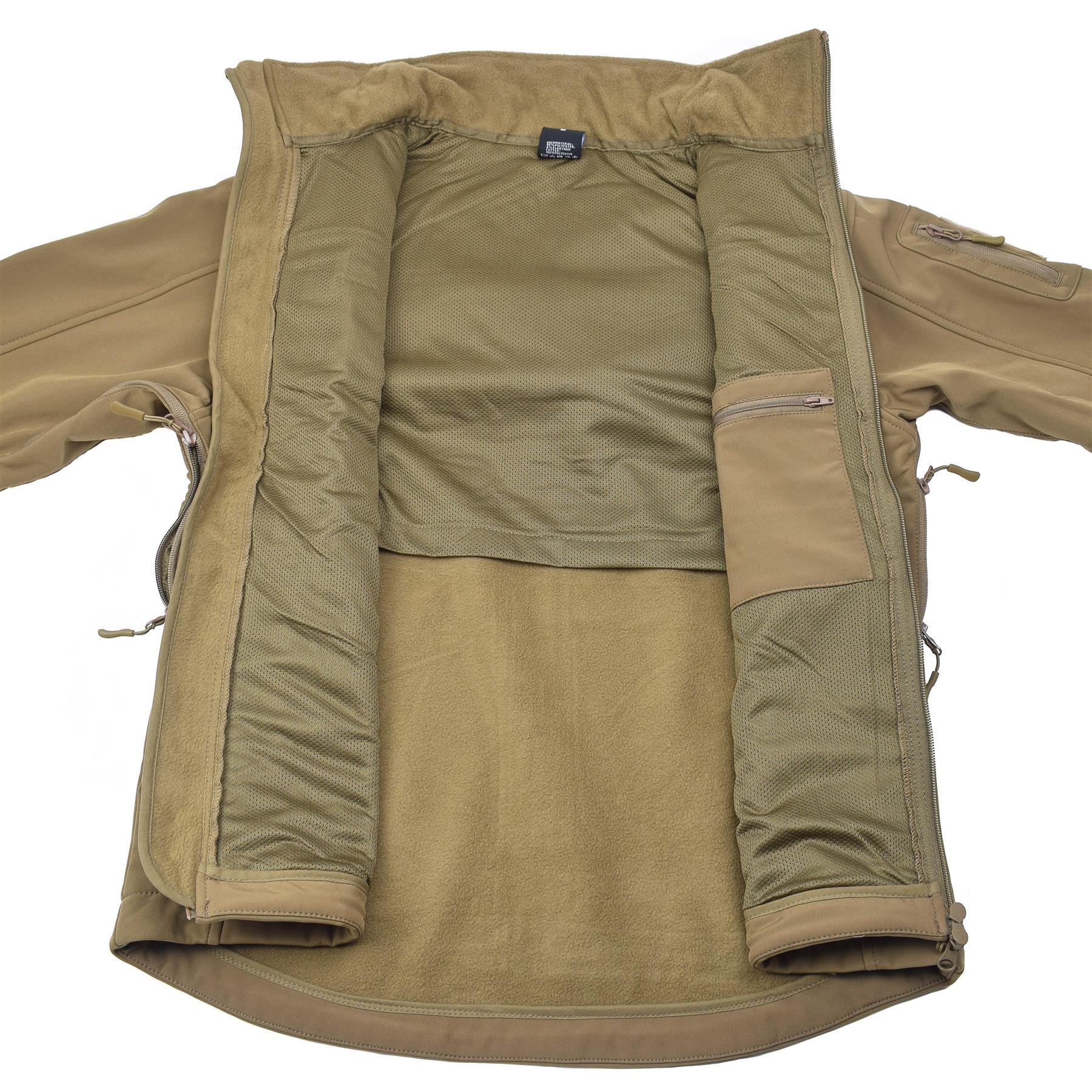 MIL-TEC soft shell waterproof tactical jacket in light brown color