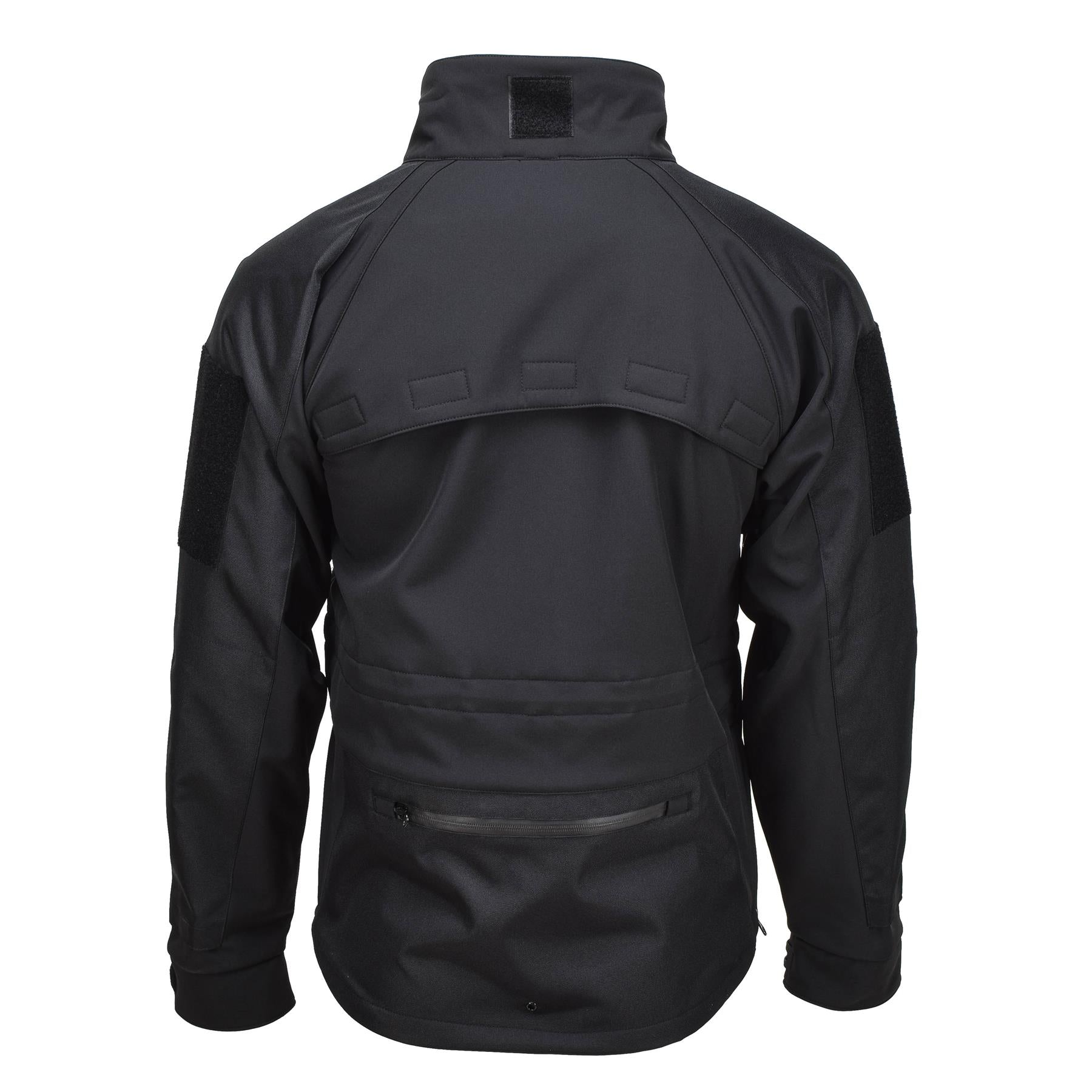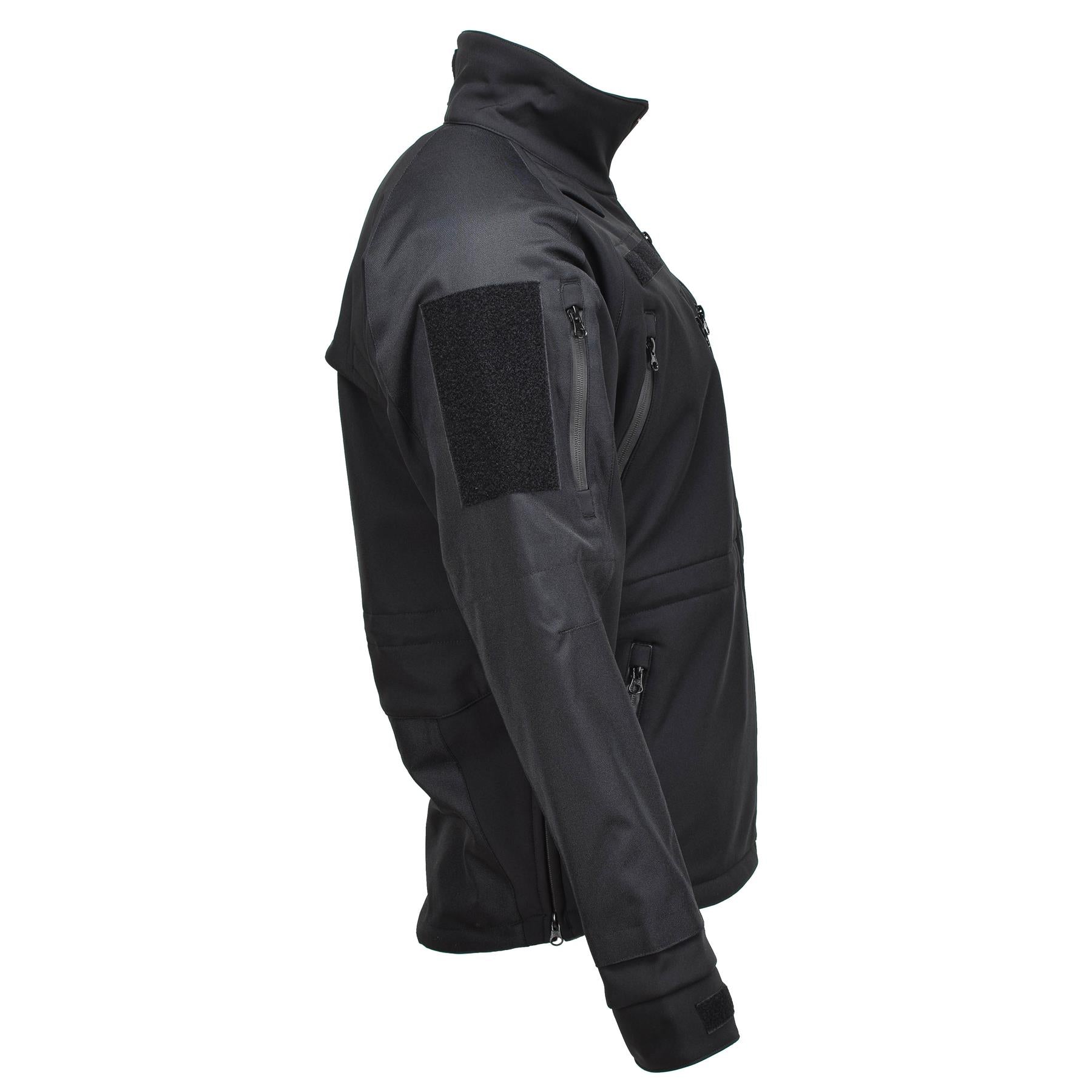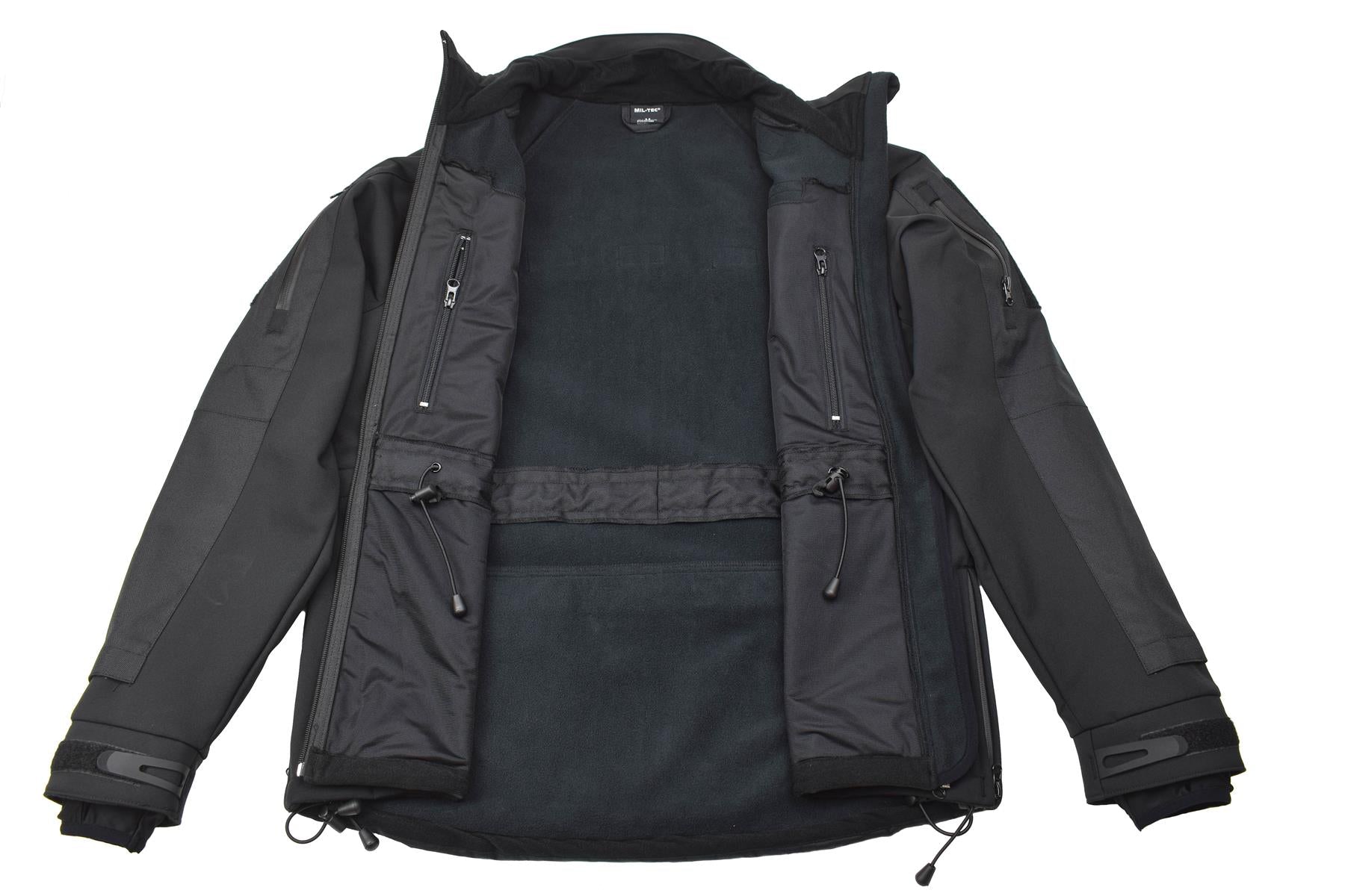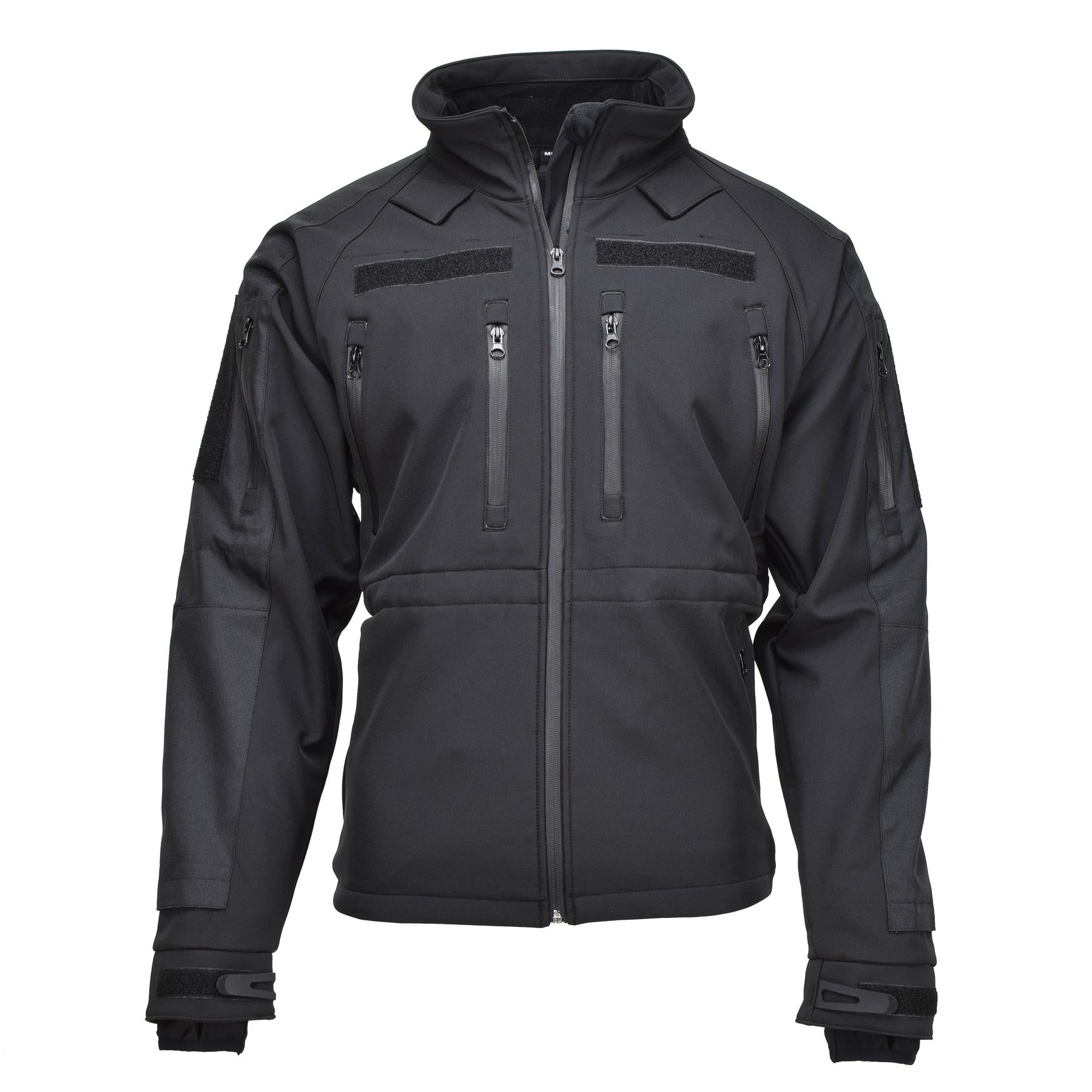 MIL-TEC Wind and Water Resistant Tactical Jacket in Black: This high quality tactical jacket is designed to protect against wind and water while providing comfort in a variety of weather conditions. Made of 94% polyester and 6% elastane, the outer layer ensures resistance to adverse conditions, while the interior of 100% polyester (fleece) guarantees warmth and comfort. The jacket has a chin guard and water-resistant zippers, and a large front pocket allows for convenient storage of essentials. This black tactical jacket is a great choice for those who value functionality and durability for everyday activities or field missions.