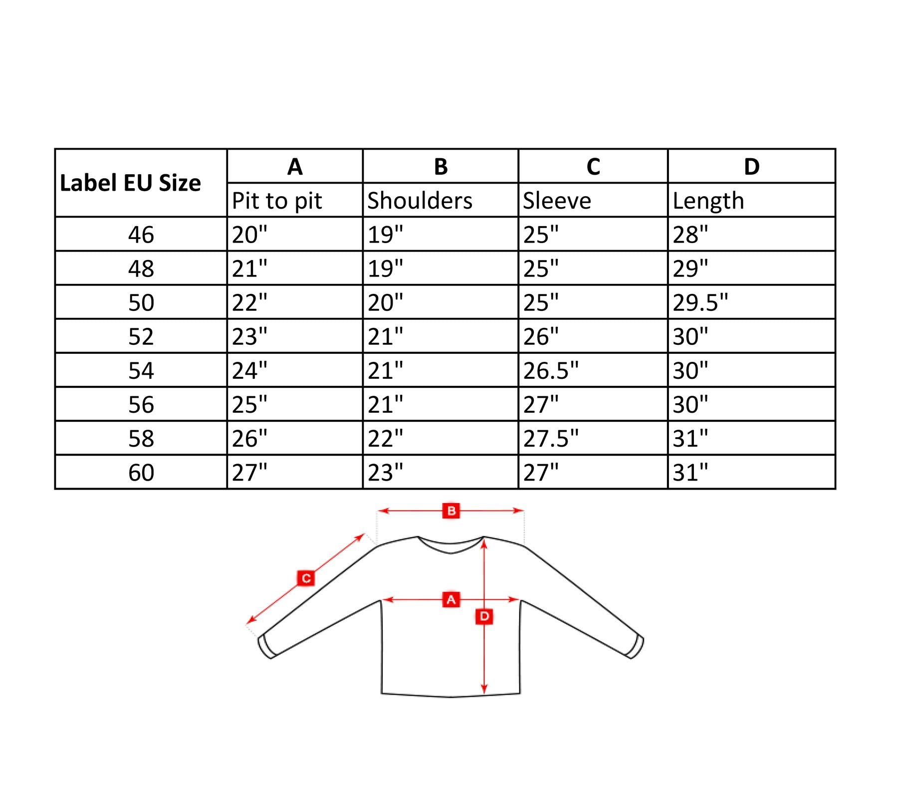 | Krūtinė | Pečiai | Rankovė | Ilgis | |