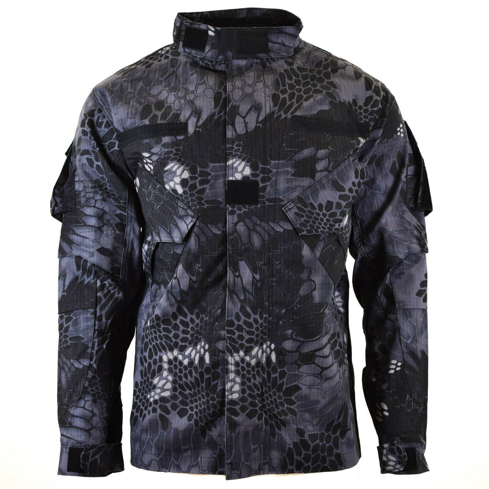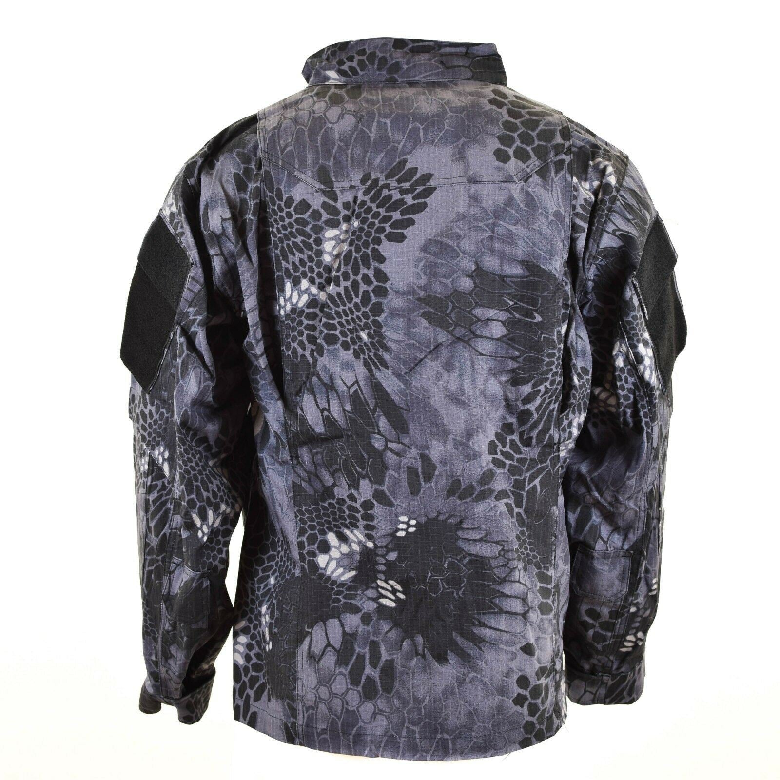 This is a military style combat tactical jacket with a "snake" camouflage pattern. The jacket is made of ripstop fabric, which is durable and tear-resistant. The cuffs and neckline are adjustable for a comfortable and secure fit. The jacket also has chest and hand pockets, where you can conveniently store the essentials. Elbows are reinforced for extra protection and durability during physical activity. This tactical jacket is designed to withstand harsh conditions and is suitable for outdoor activities such as hiking, camping and tactical training.