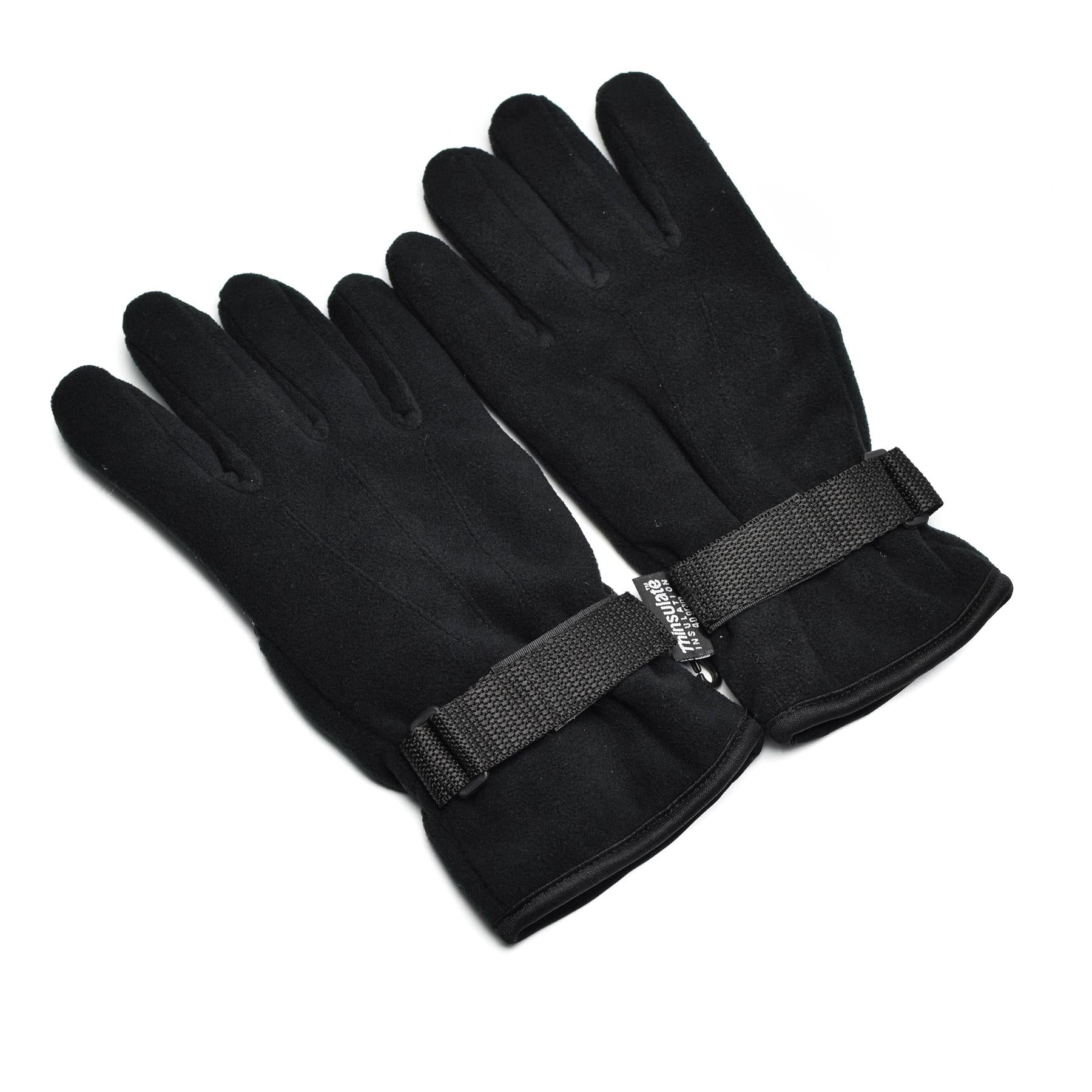Thinsulate fleece winter gloves made of durable and pleasant polyester 100% fabric. The palms of the gloves are reinforced with additional non-slip fabrics. These gloves have a Thinsulate lining that traps body heat, providing excellent protection against the cold. Features: Color: Black Made of polyester 100% fabric Extra non-slip fabric reinforced glove palms Thinsulate lining